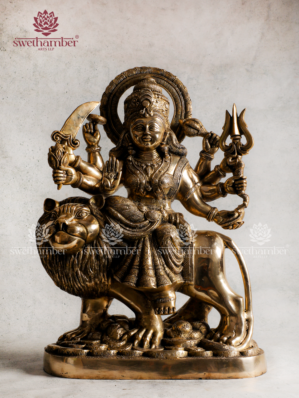 Brass Durga Mata Idol with Lion | Divine Hindu Goddess Statue