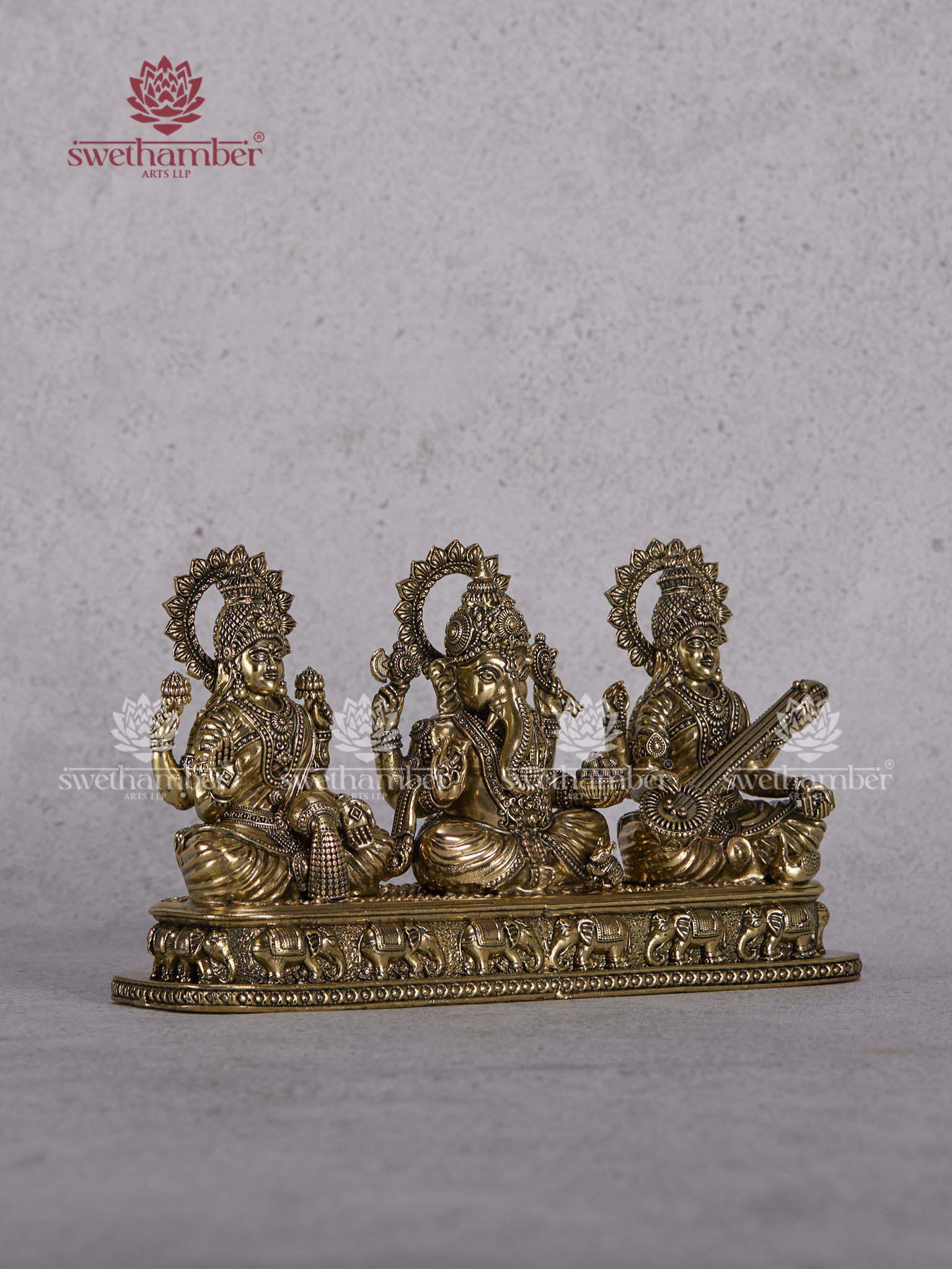 Brass Ganpati Laxmi Saraswati Statue – Lightweight Home Temple Idols