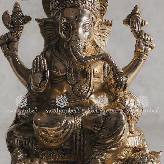 Sitting Ganesha Brass Idol (Ek Pada Pose)