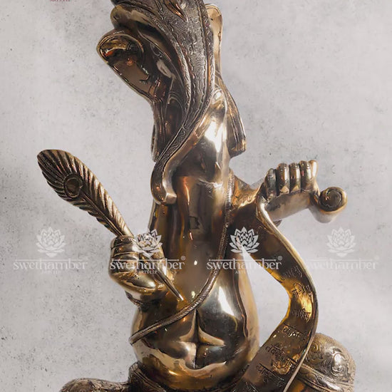 This Brass Ganesha Writing Idol symbolizes focus, wisdom, and the power of learning, inspiring positivity and success in every endeavor.