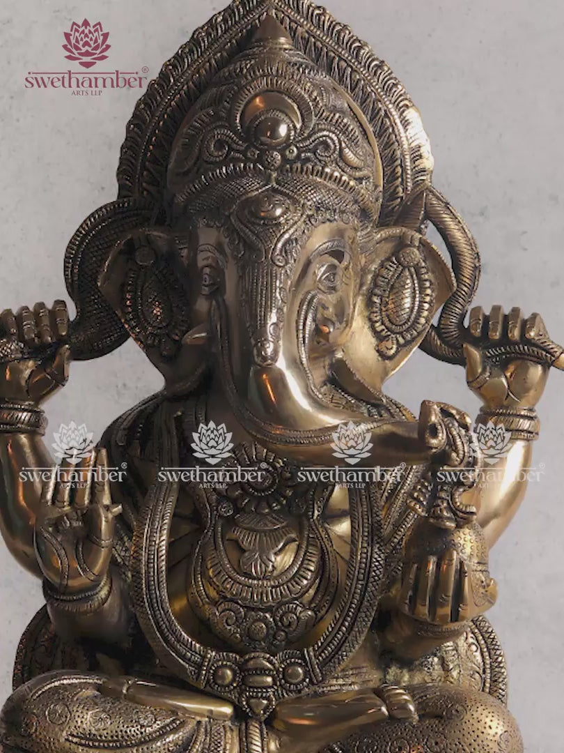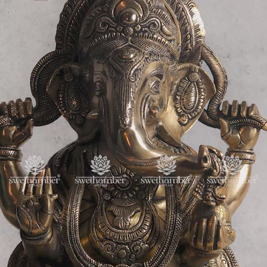 Experience calm, balance, and divine energy with this Ganesha in Padmasana Brass Idol, depicting Lord Ganpati seated in the sacred lotus posture, symbolizing meditation, inner peace, and spiritual awakening. This serene form of Ganesha is ideal for creating a tranquil and positive environment in your home or workspace.