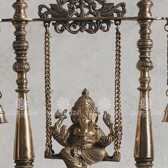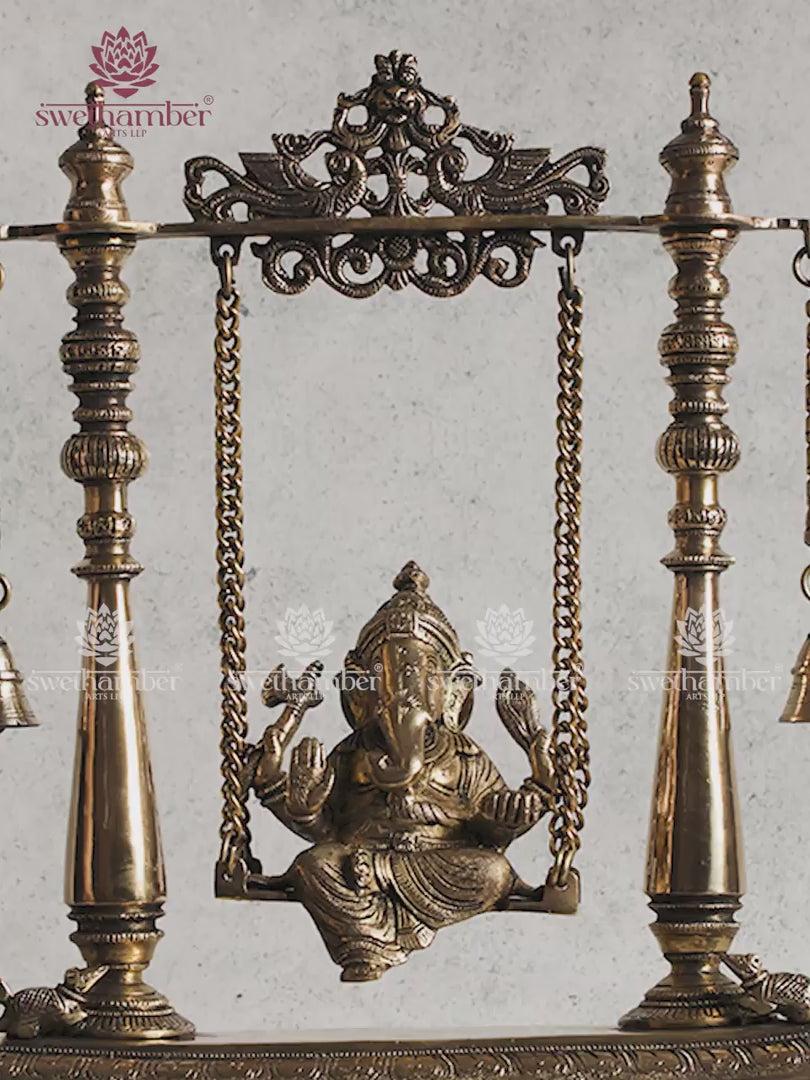 The warm golden finish of pure brass radiates serenity and devotion, making it a striking centerpiece for your temple, entryway, or interior décor. Every element—from Ganesha’s serene expression to the detailed swing structure—exudes elegance and spiritual charm.