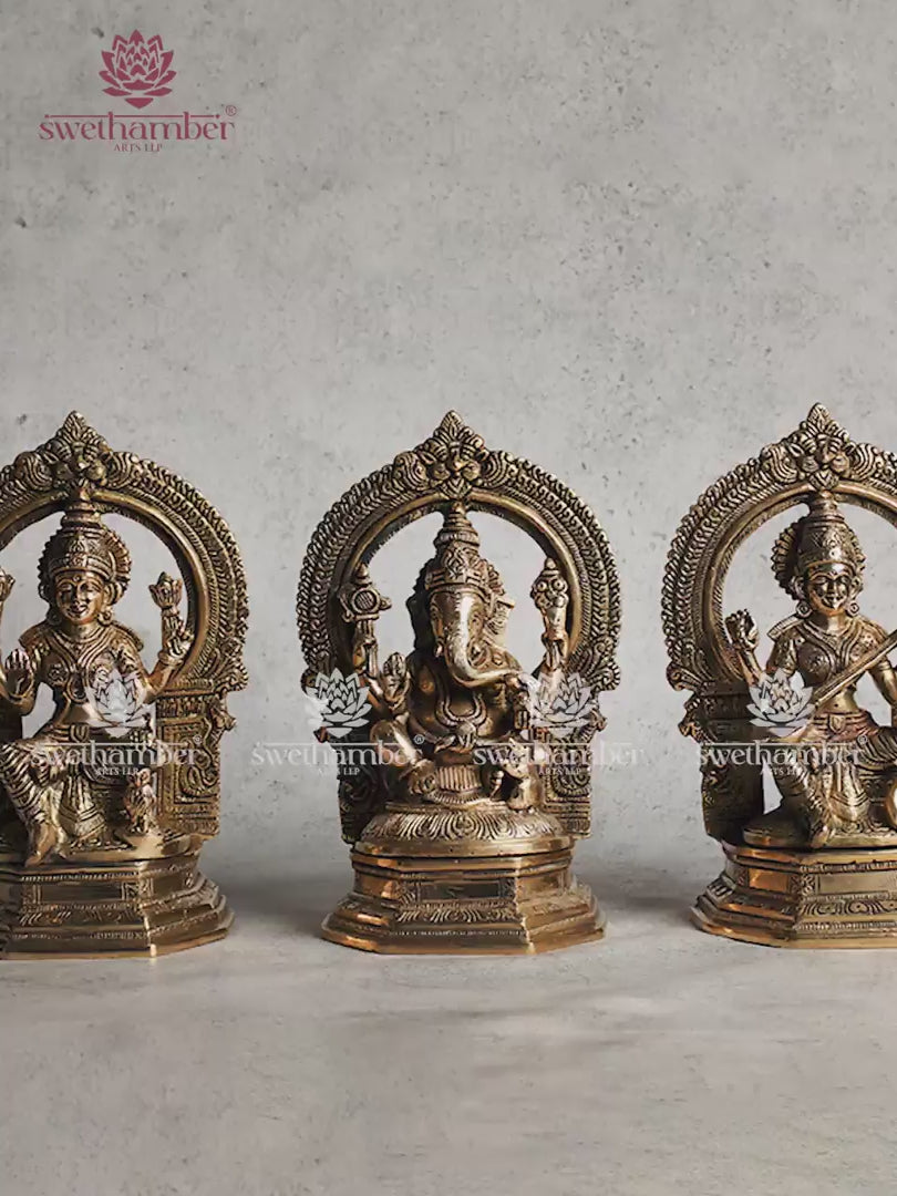 Brass Lord Ganesha Laxmi and Saraswati Statue