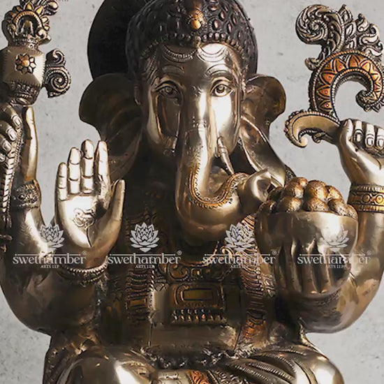 ornaments to the symbolic positioning of his hands and modak (sweet) in his