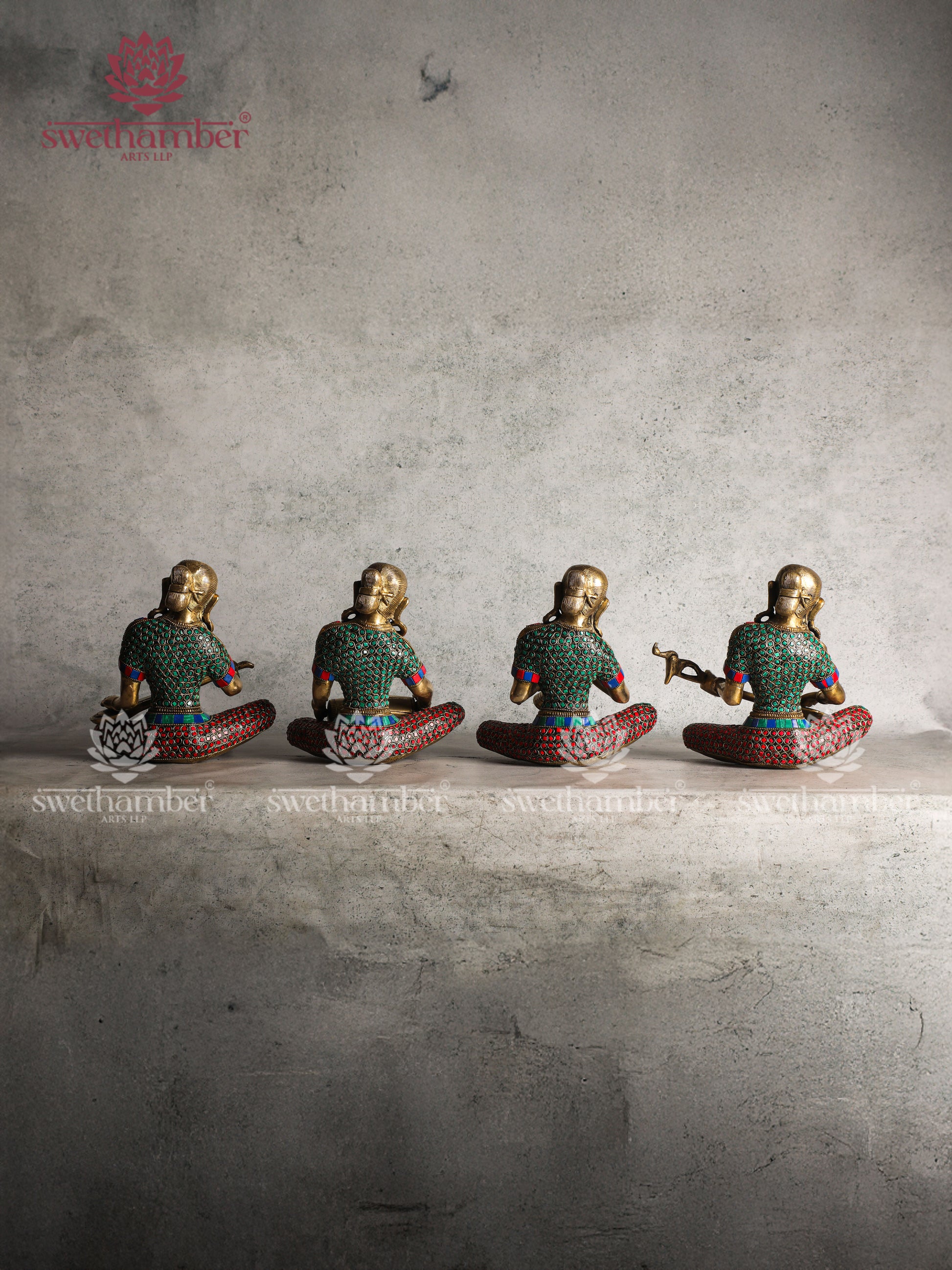 Each piece in the set is sculpted by skilled artisans with intricate detailing and a lustrous golden or antique finish, making it a stunning centerpiece for your living room, office, or puja area. The musical theme represents unity, rhythm, and positivity, adding a touch of elegance and serenity to any space